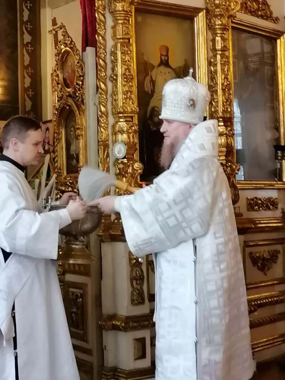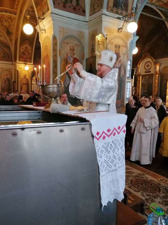 19 января в двунадесятый праздник Святого Богоявления, Крещения Господа Бога и Спаса нашего Иисуса Христа архиепископ Бежецкий и Удомельский Каллистрат совершил Божественную Литургию в Спасском кафедральном соборе г. Бежецка. Его Высокопреосвященству сослужили протоиерей Ярослав Шведов, протоиерей Евгений Новиков, протоиерей Анатолий Парахин и диакон Сергий Валлит.