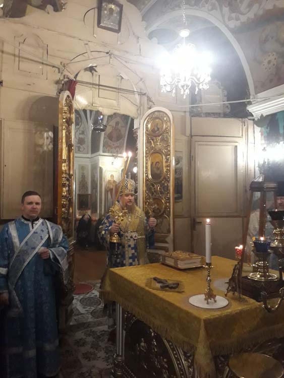 Накануне Архипастырь возглавил служение Всенощного бдения также в Спасском кафедральном соборе.