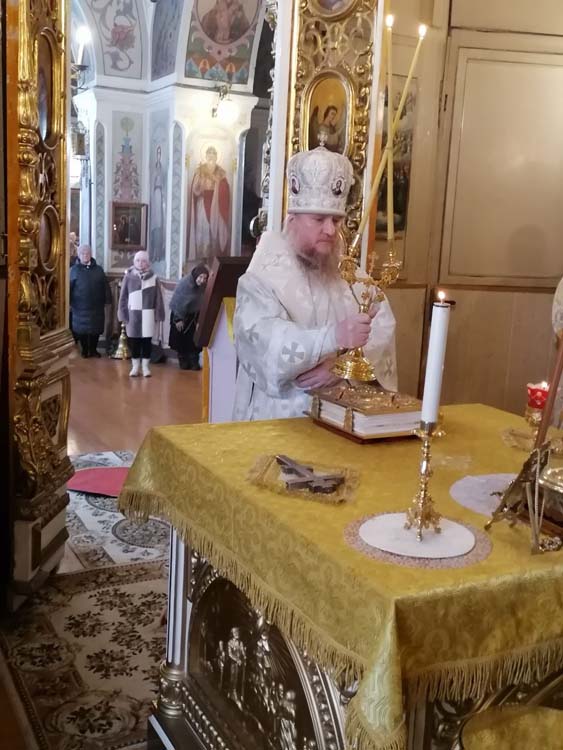 22 февраля, в Неделю сыропустную, Воспоминание Адамова изгнания, Прощеное воскресенье, архиепископ Бежецкий и Удомельский Каллистрат совершил Божественную Литургию в Спасском кафедральном соборе г. Бежецка. Его Высокопреосвященству сослужили протоиерей Ярослав Шведов, иерей Алексий Брызгалов и диакон Сергий Валлит.